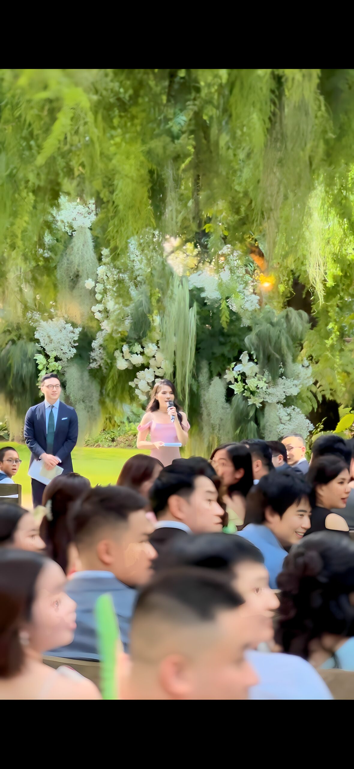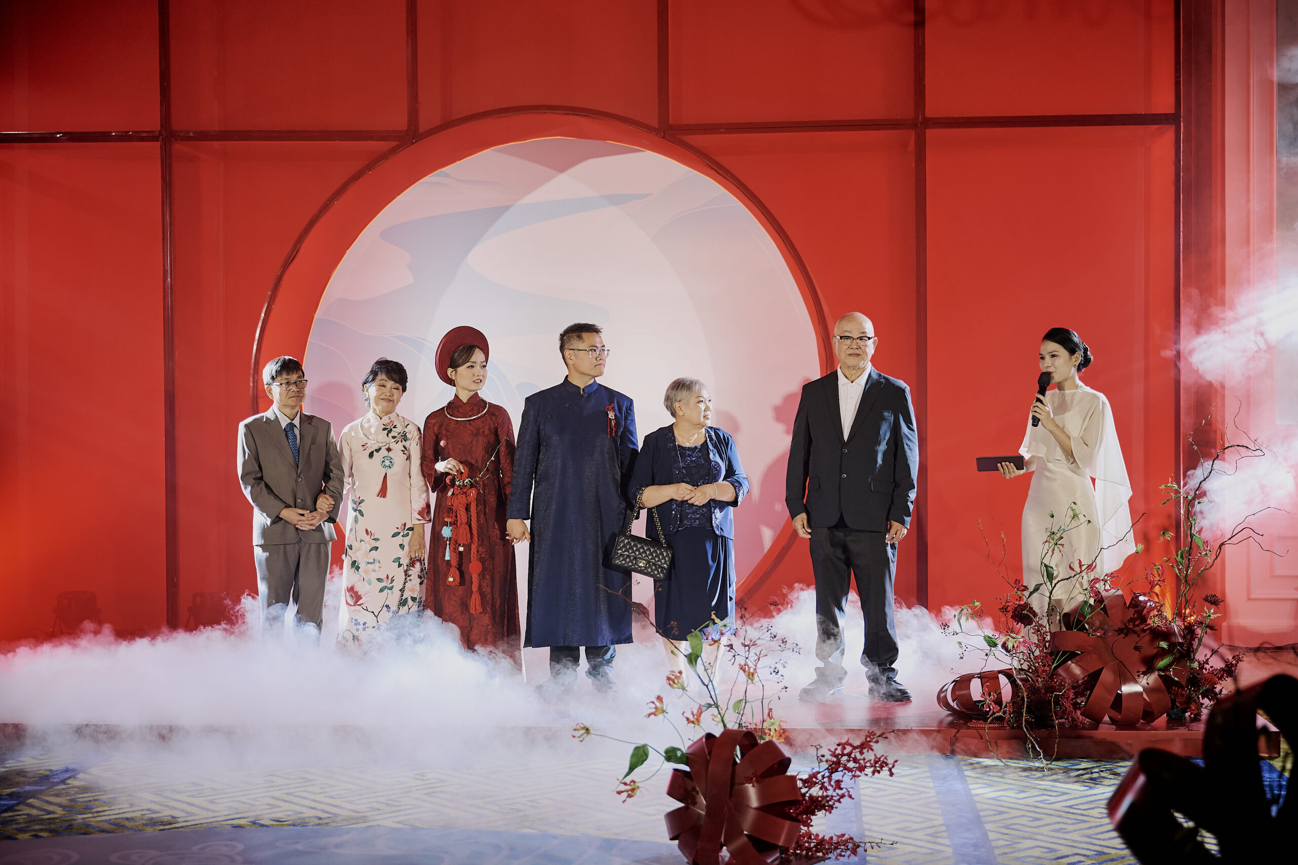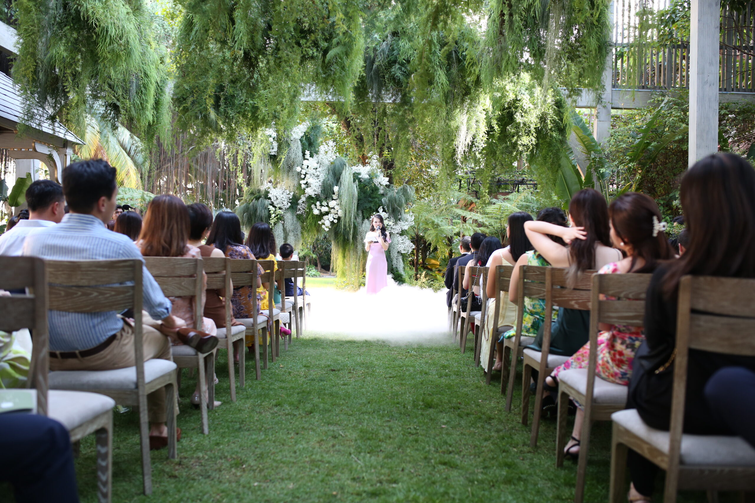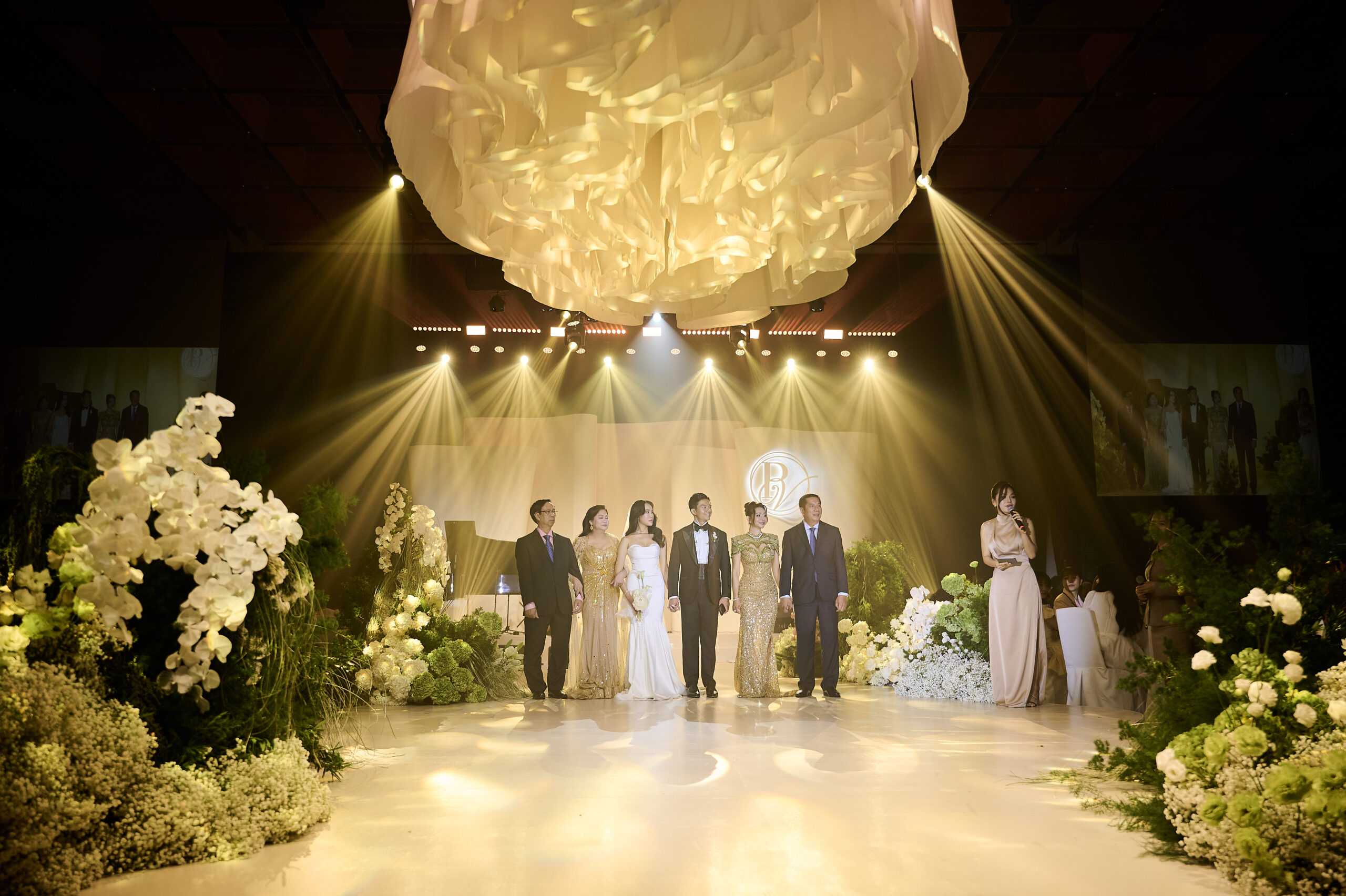 Leading the exchange of vows and rings with a personalized bilingual script and cultural integration. (This can also be co-officiated with a chosen friend of the couple for a more personal touch)