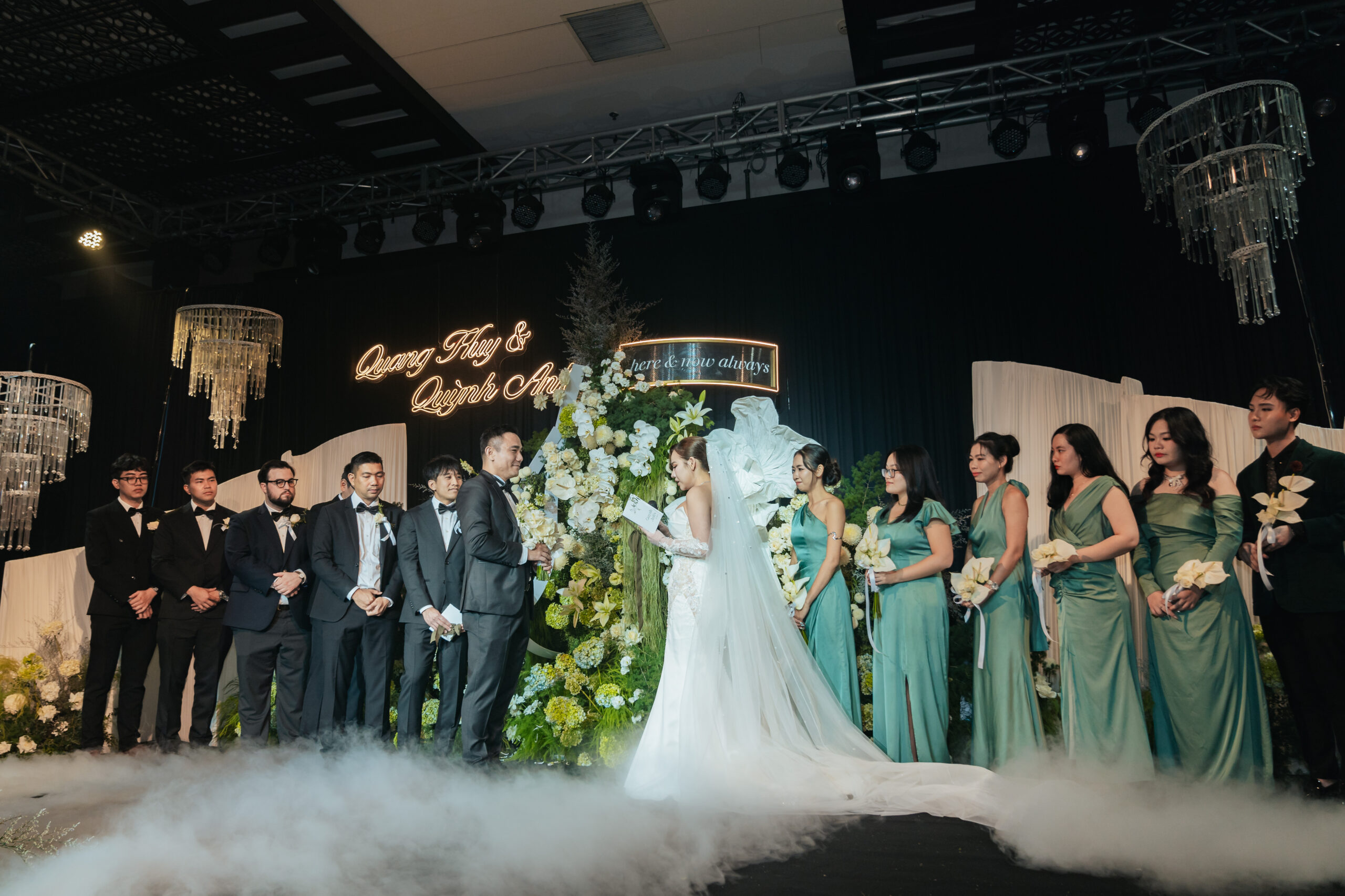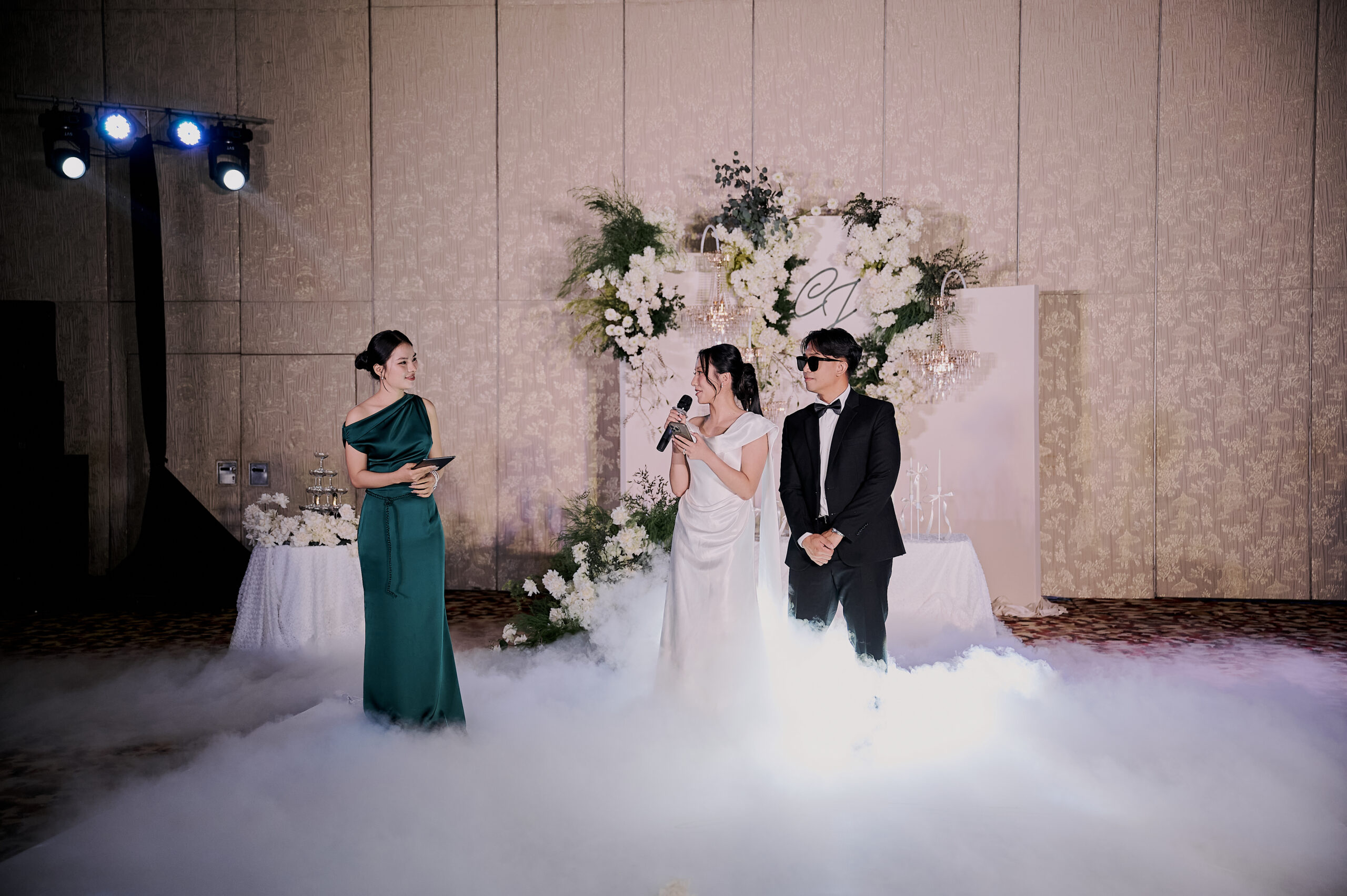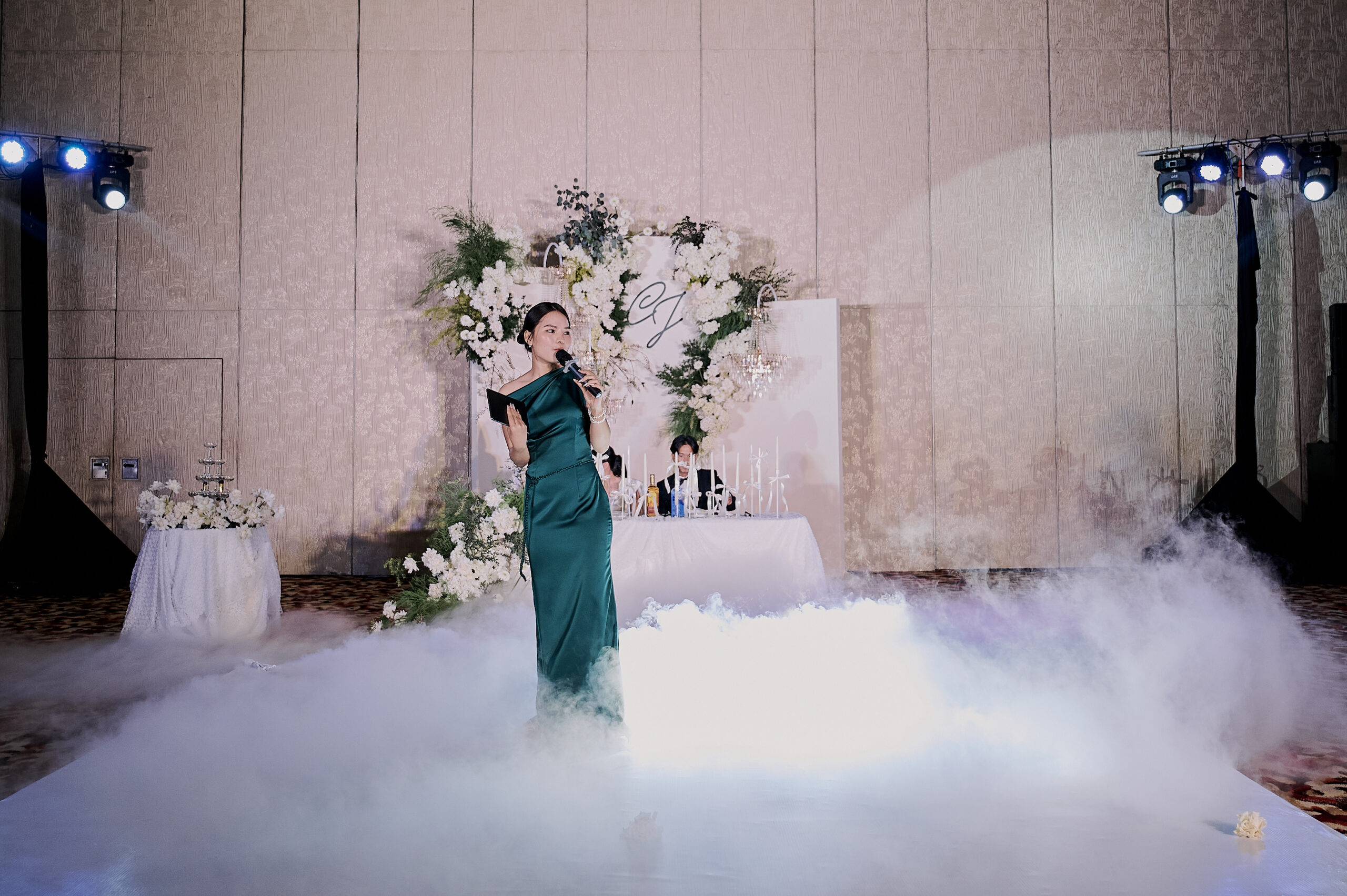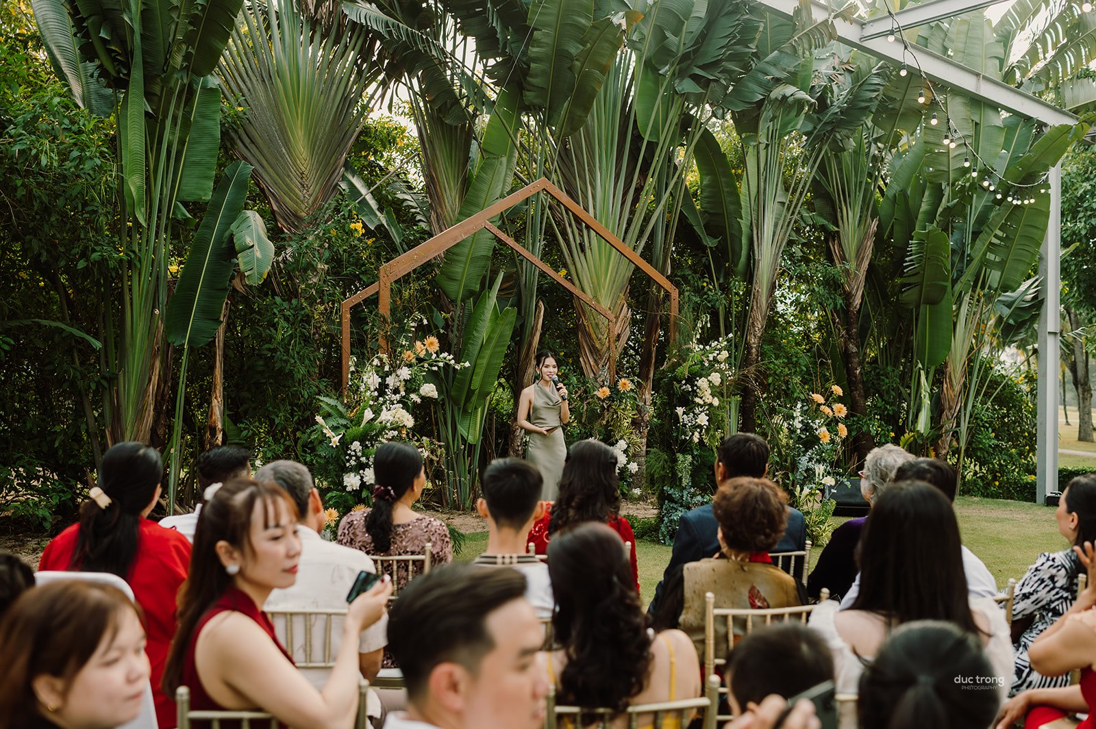 Leading the exchange of vows and rings with a personalized bilingual script and cultural integration. (This can also be co-officiated with a chosen friend of the couple for a more personal touch)