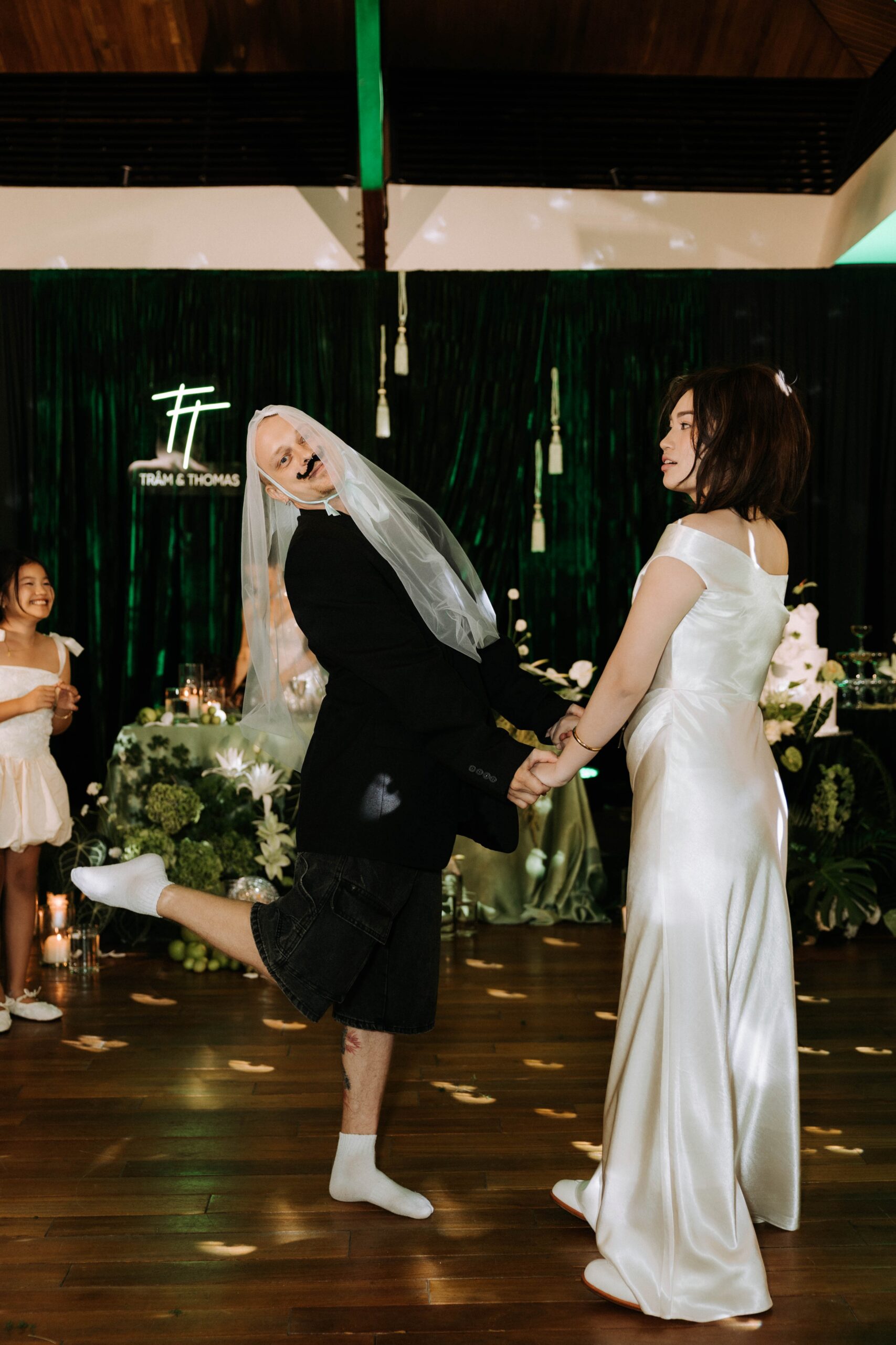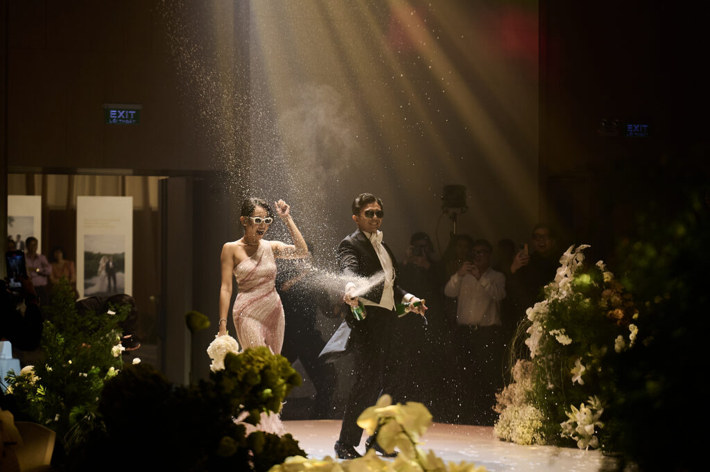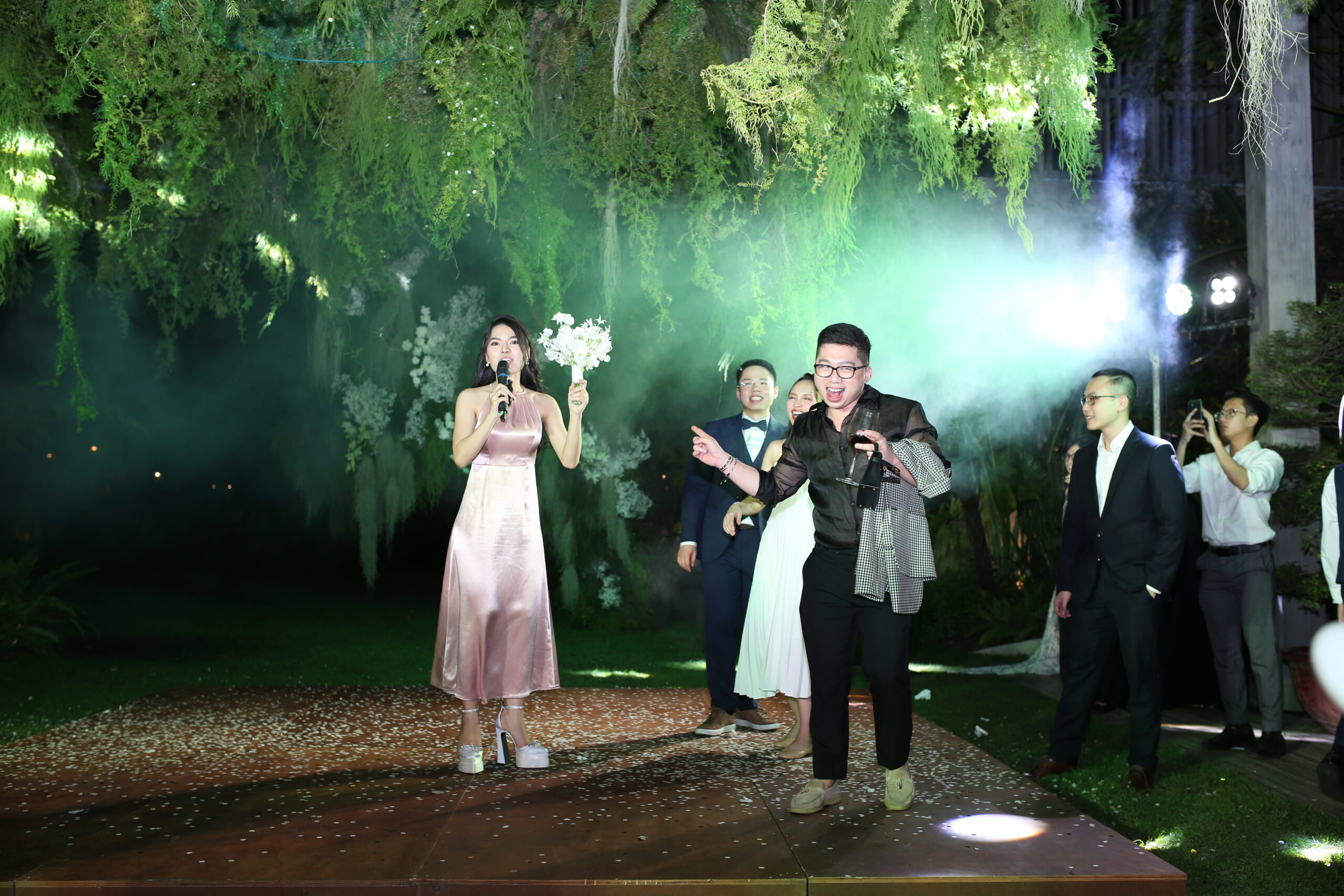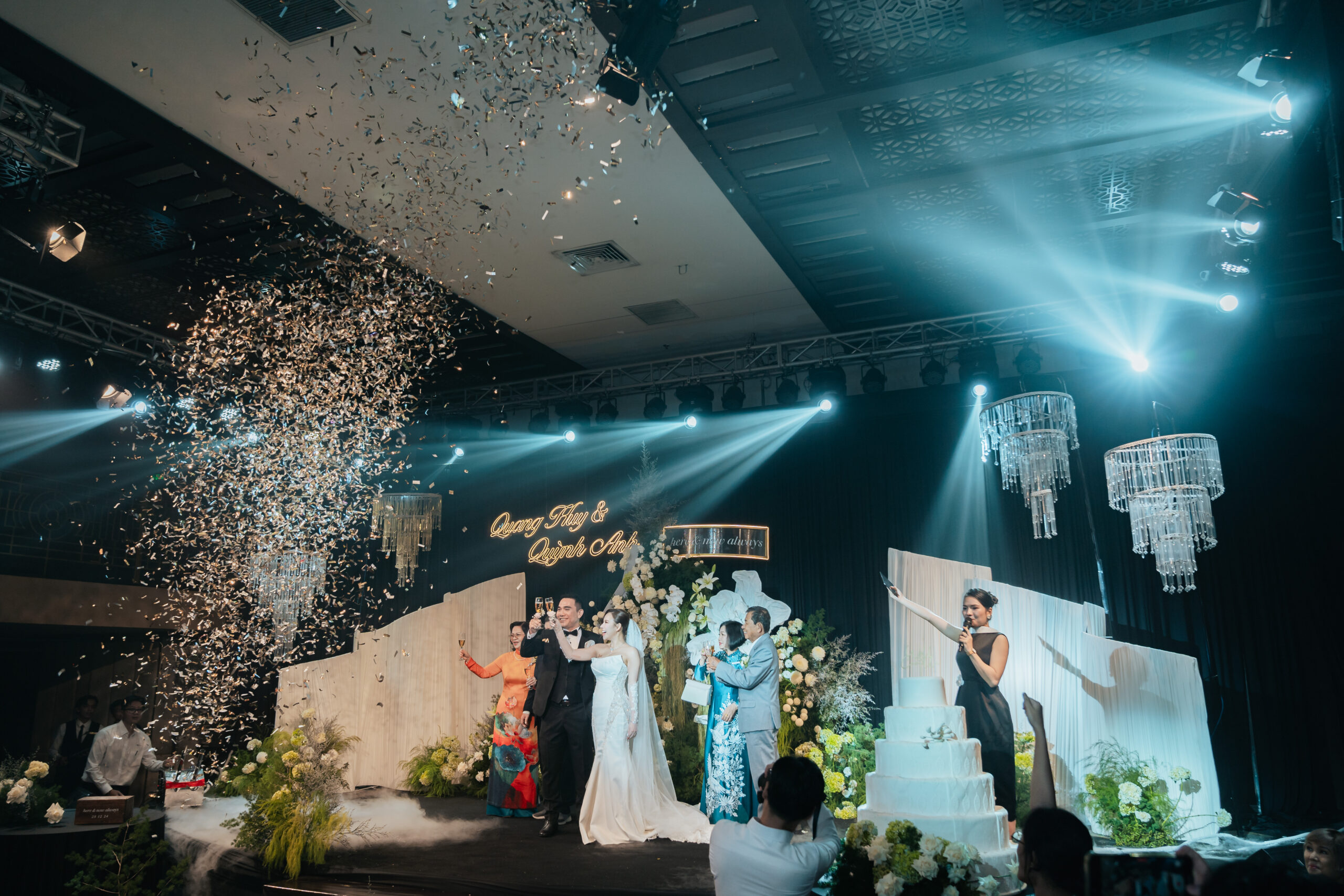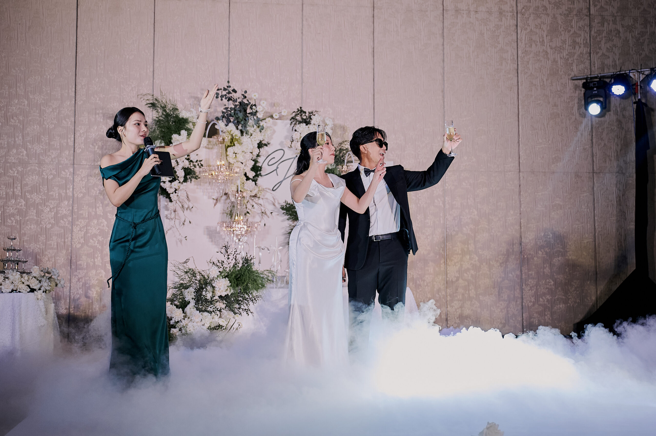 Leading the exchange of vows and rings with a personalized bilingual script and cultural integration. (This can also be co-officiated with a chosen friend of the couple for a more personal touch)